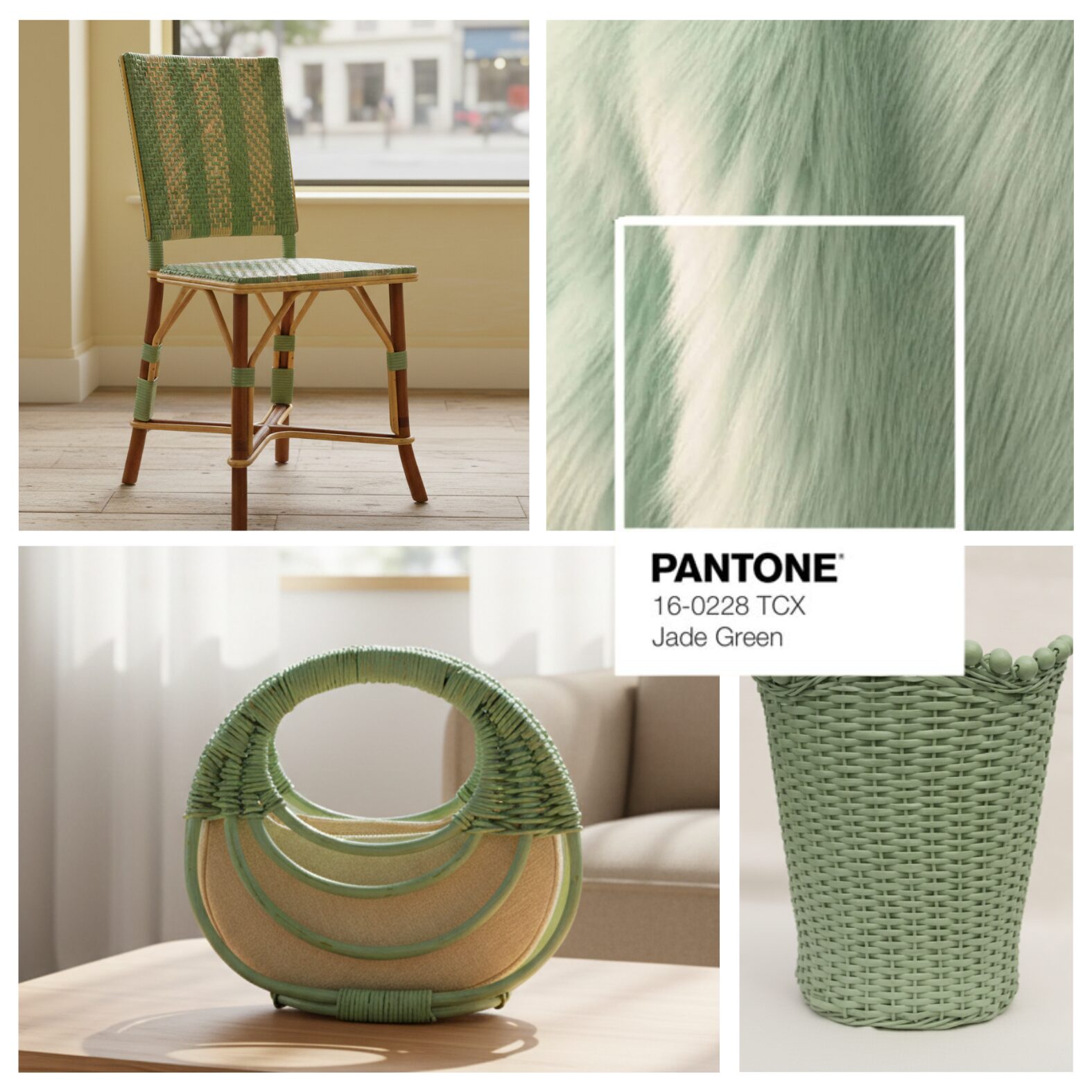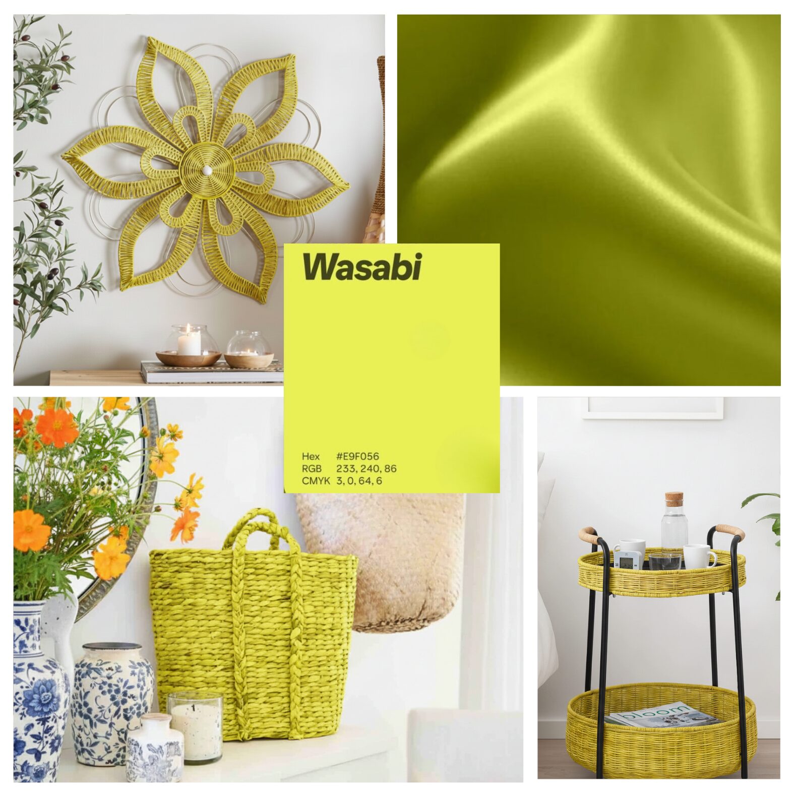 Use Wasabi for decorative handles, trims, edge accents, or interior basket linings. It’s especially effective in spring/summer collections or gifting assortments. When paired with natural beige, Cloud Dancer, or deep wood tones, Wasabi creates a surprising pop that energizes the eye.