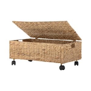 Underbed Storage Basket on Wheels with Lid – Natural Water Hyacinth Organizer – B00506