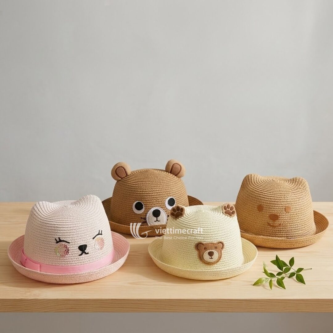 Brighten up your child’s summer with our Handwoven Straw Sun Hat Because we use lightweight, breathable natural straw, this straw hat provides excellent sun protection while keeping your little ones cool and comfortable. The charming designs feature playful 3D ears and sweet embroidered expressions. Consequently, these hats turn sun safety into a fun part of every outdoor adventure.
