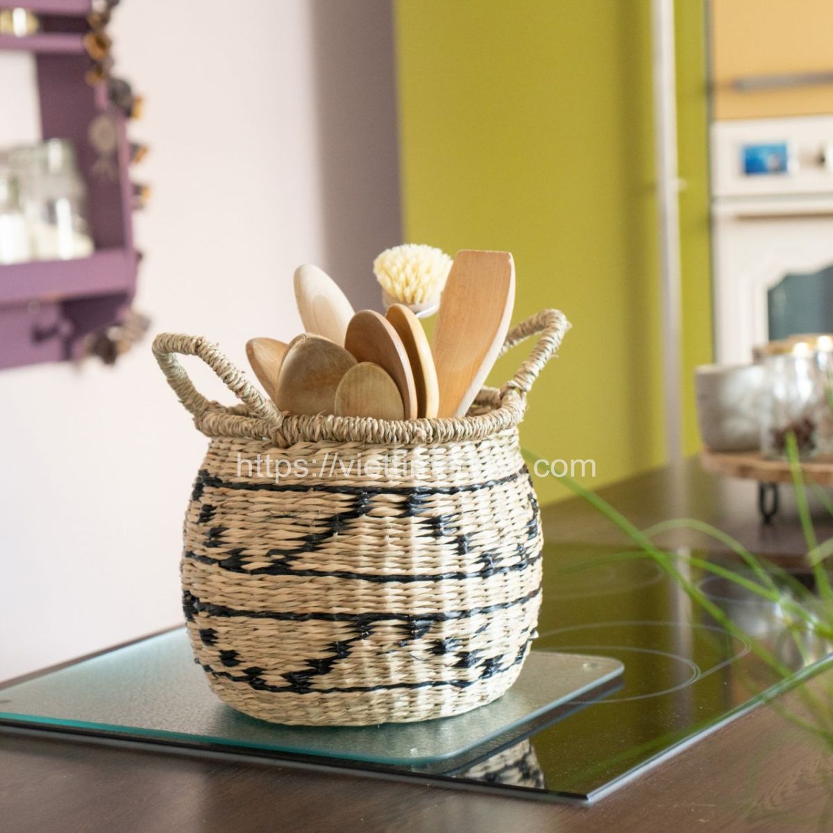 Seagrass basket mix typically combines natural and black colors to create an aesthetically pleasing and visually appealing design. Because this seagrass basket is made from natural materials, it was carefully crafted to be strong and stylish.
