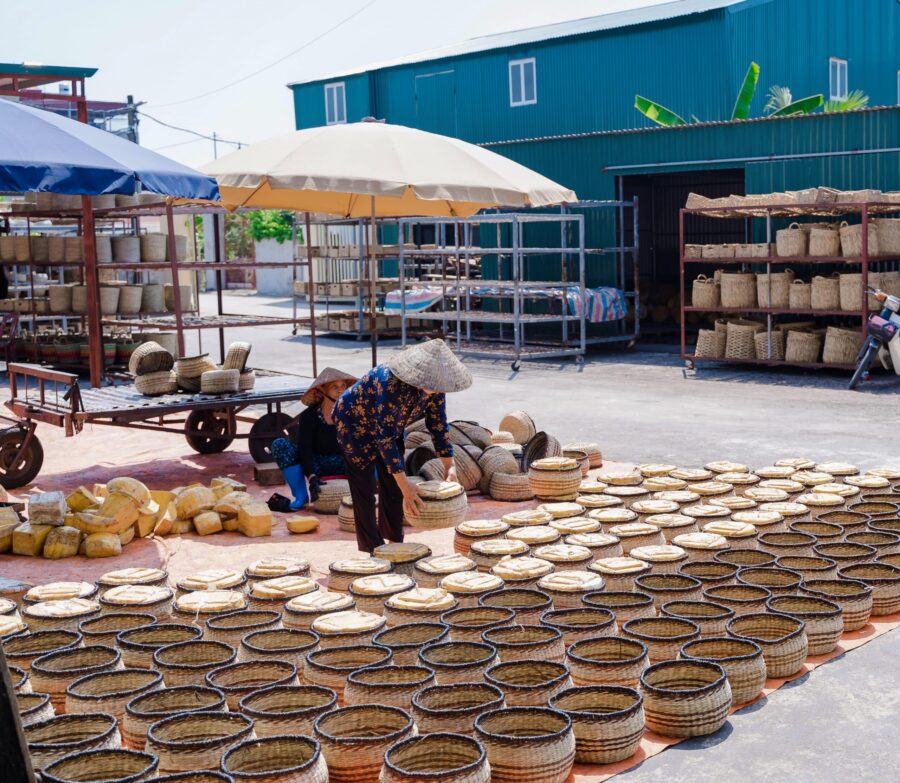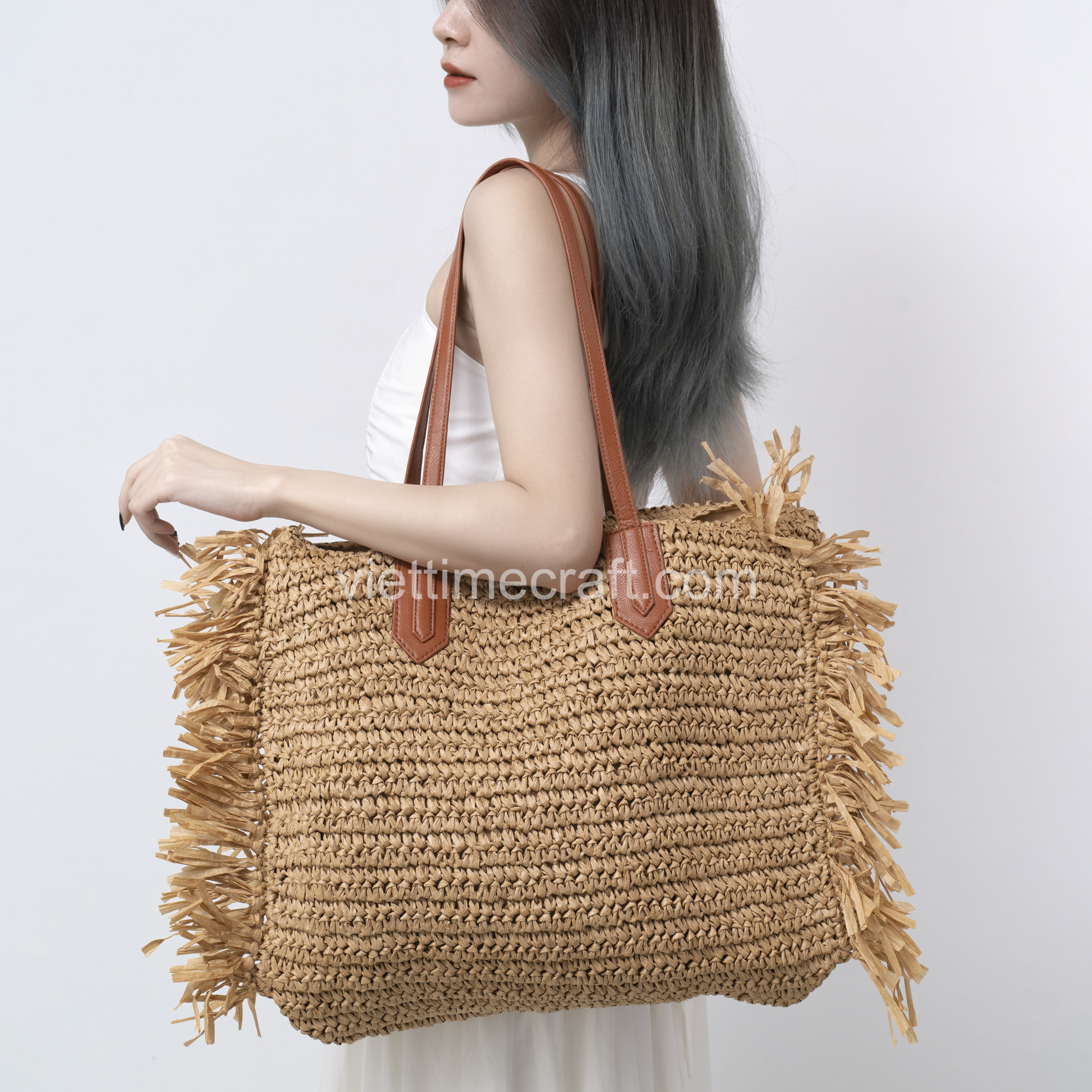 Our rattan bag continues the trend! This lovely rattan cane bag is made from leather and cane fabric/woven rattan. Handmade entirely by Vietnamese artisans. The rattan summer bag, as the name says, has a lightweight and eco-friendly characteristic that is great for you if you like linen and are comfortable with most types of clothing!