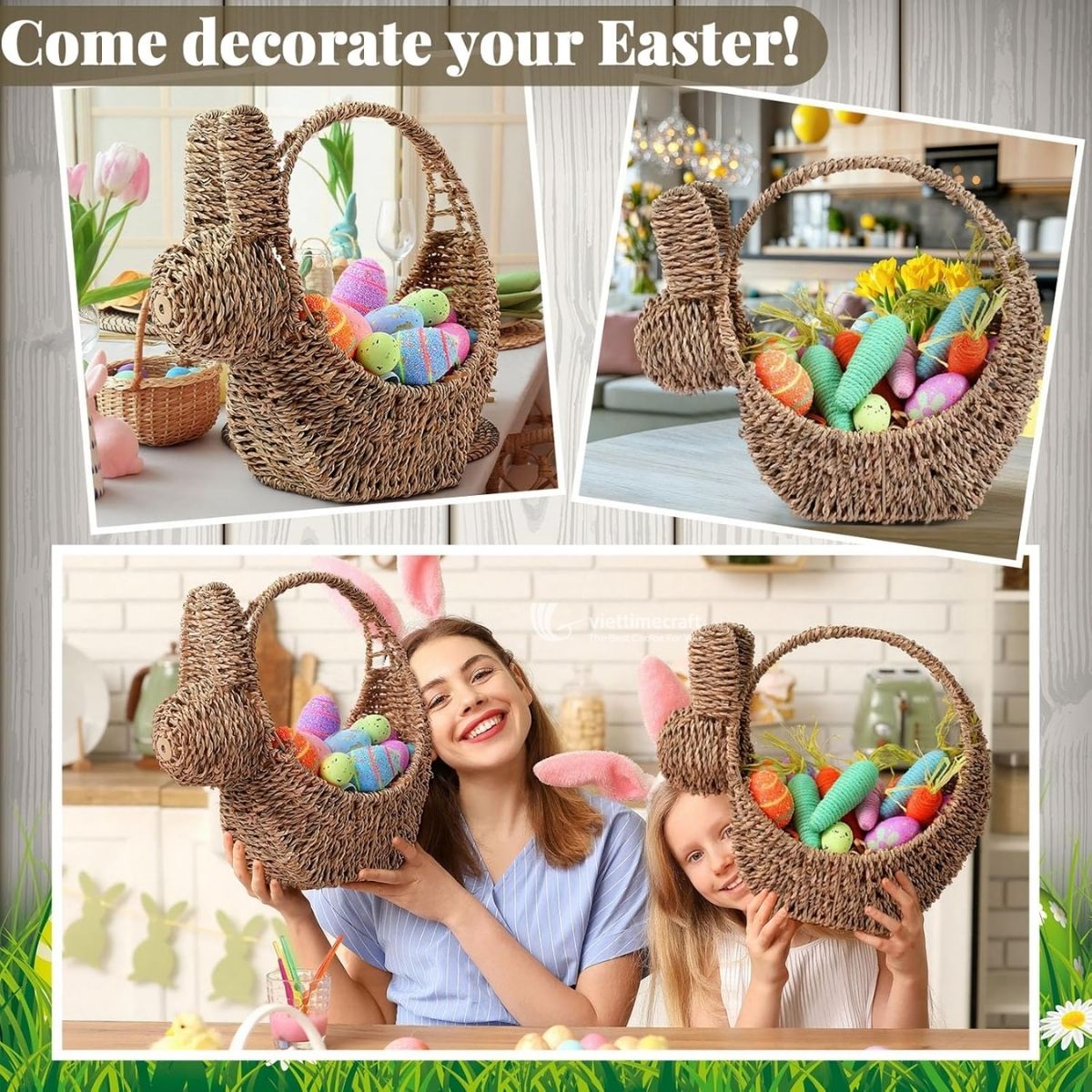 At Viettimecraft, we focus on combining traditional craftsmanship with modern lifestyle needs. As a result, this basket is not only suitable for everyday organization but also ideal for seasonal decoration, especially during Easter or springtime styling.