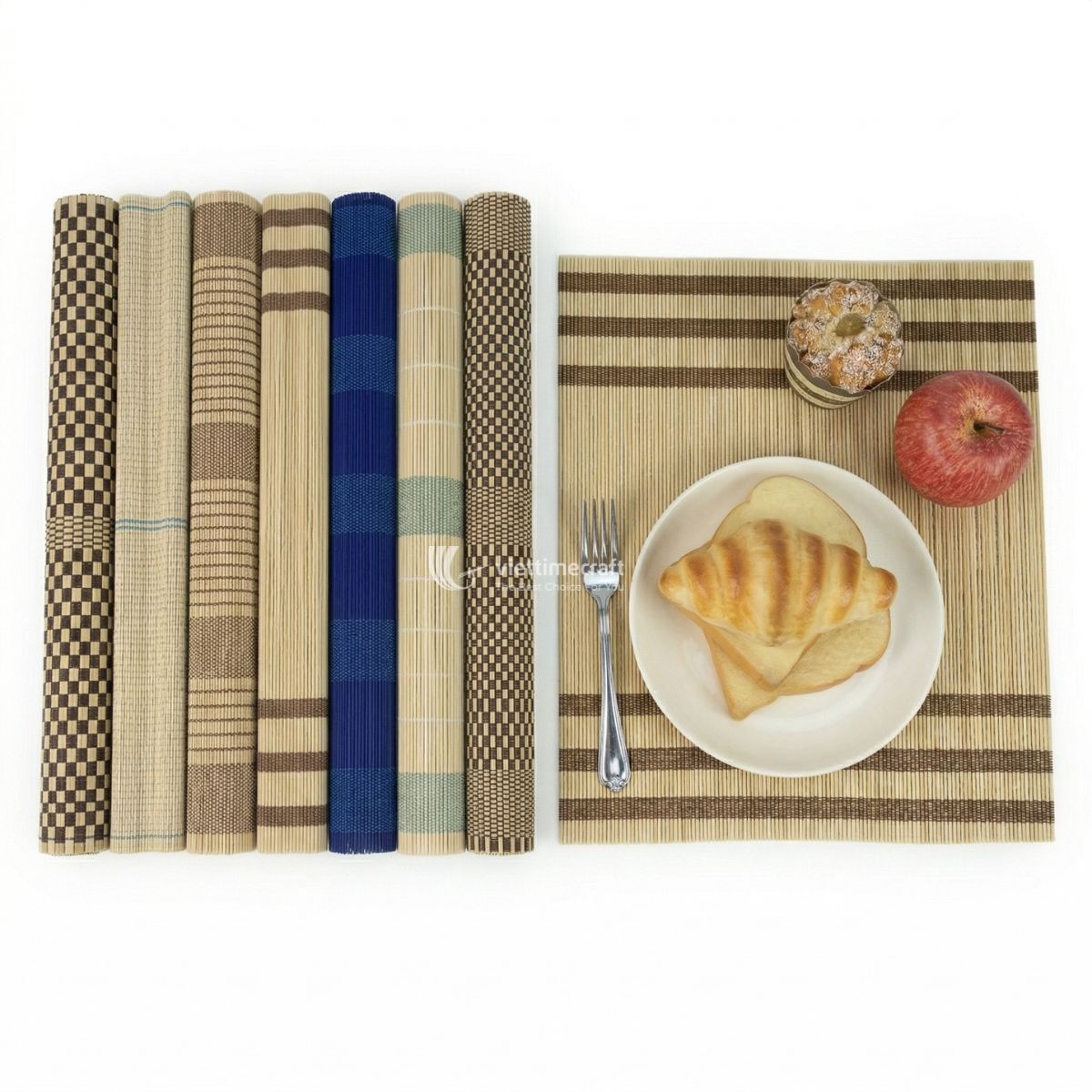 - Crafted from natural bamboo, the placemats are not only visually elegant but also highly functional. Soft yet durable, these placemats are heat-resistant, easy to clean, and biodegradable -a smart alternative to plastic or synthetic options. Each mat features a clean, striped pattern that balances the rustic appeal of bamboo with a contemporary aesthetic, ideal for casual dining, eco cafes, or hotel breakfast settings.
