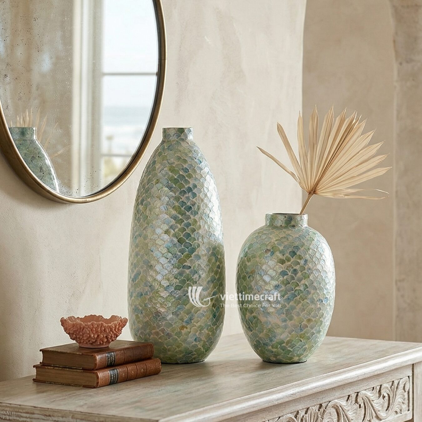 This mosaic vase offers immense versatility for professional interior designers and home stylists: