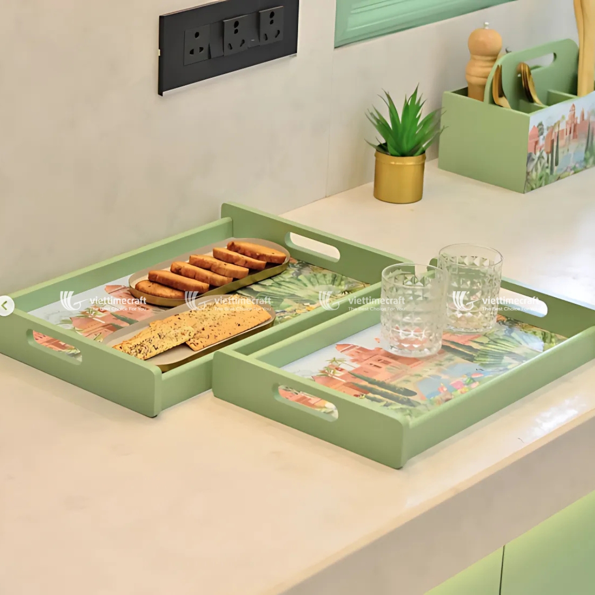- Serving Tray Set (Nested) – Ideal for carrying tea, coffee, snacks, or breakfast in bed. With ergonomic handles and a smooth lacquer finish, these trays bring both function and elegance to your kitchen, tea time, or home décor. Perfect for gifting or styling modern and vintage-inspired interiors