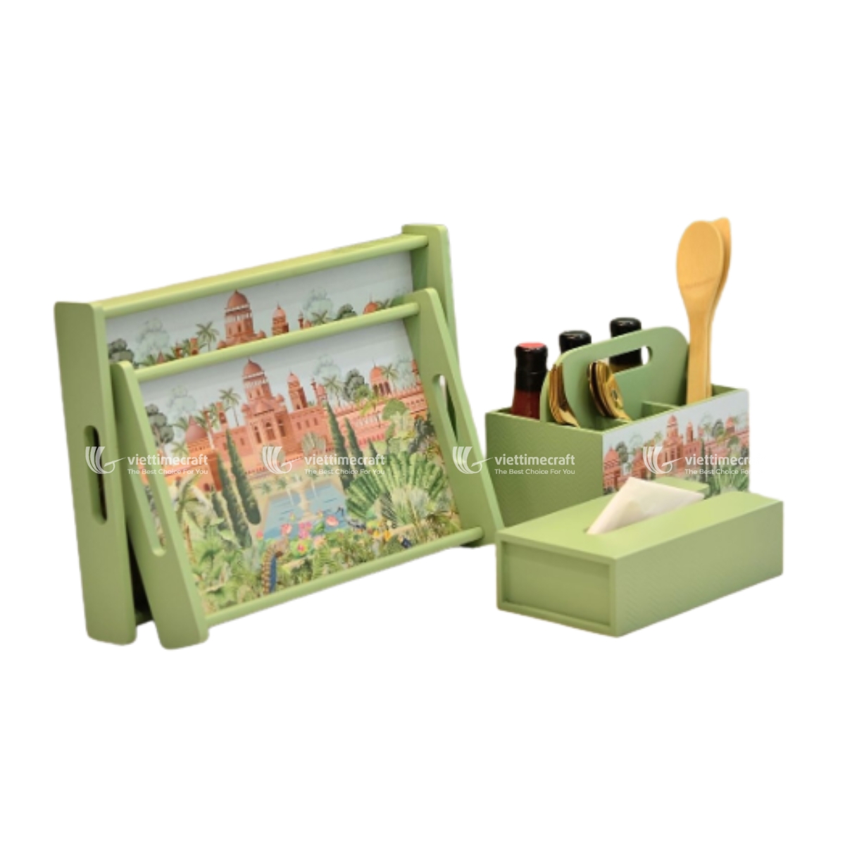 Each item showcases skilled Vietnamese craftsmanship with smooth lacquer layers and detailed oriental motifs, making it not just functional but also a refined decorative addition.