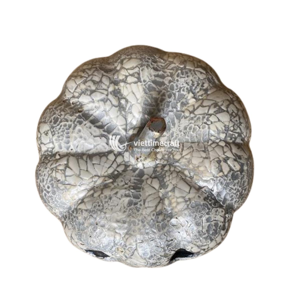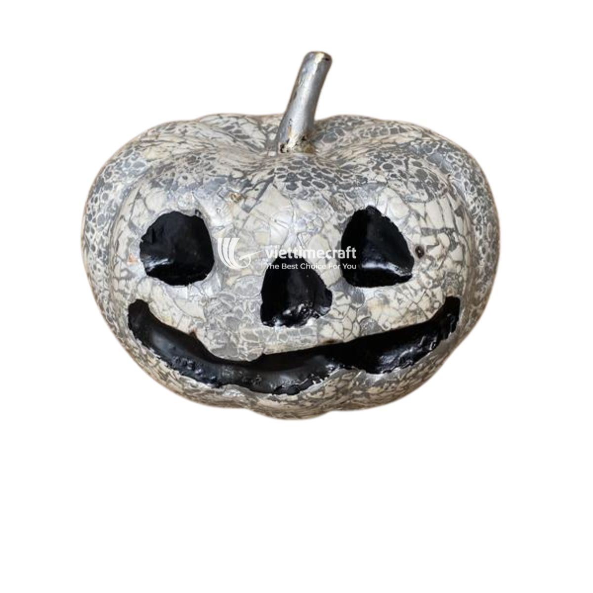 Bring a one-of-a-kind artisan touch to your seasonal display with this handcrafted Pumpkin Decor, made from recycled paper pulp and finished with a stunning eggshell mosaic lacquer. Carefully sculpted by skilled Vietnamese artisans, each pumpkin features a quirky smile and cracked-glaze finish—perfect for adding personality and craftsmanship to your Halloween setup.