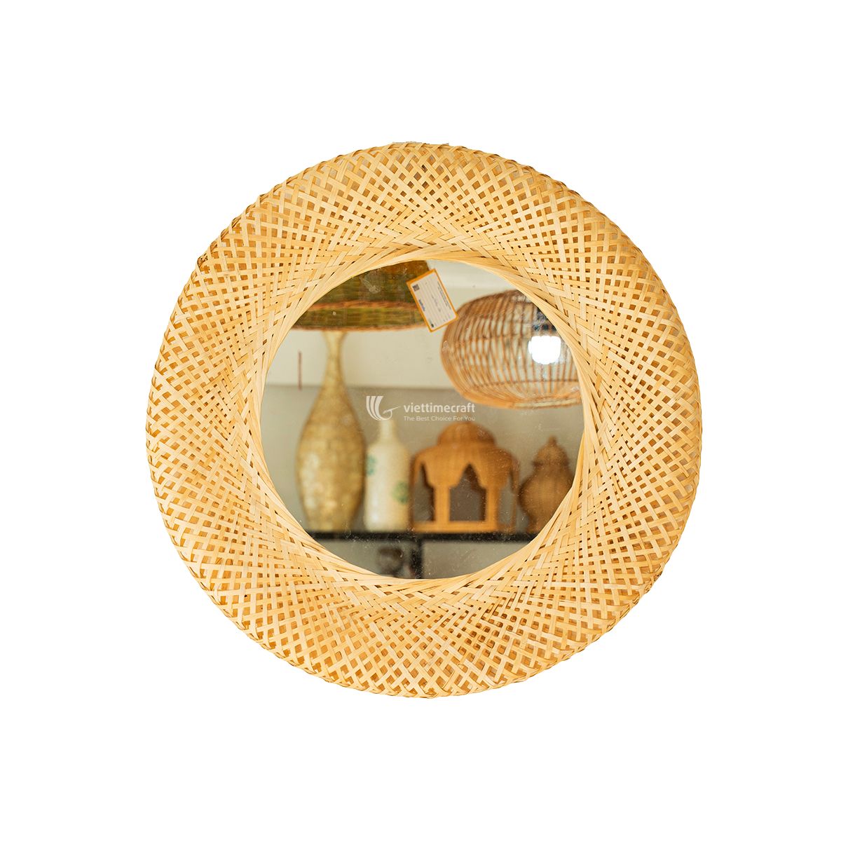 Handwoven Bamboo Wall Mirror, Natural Frame for Wholesale Home Decor – TD00442