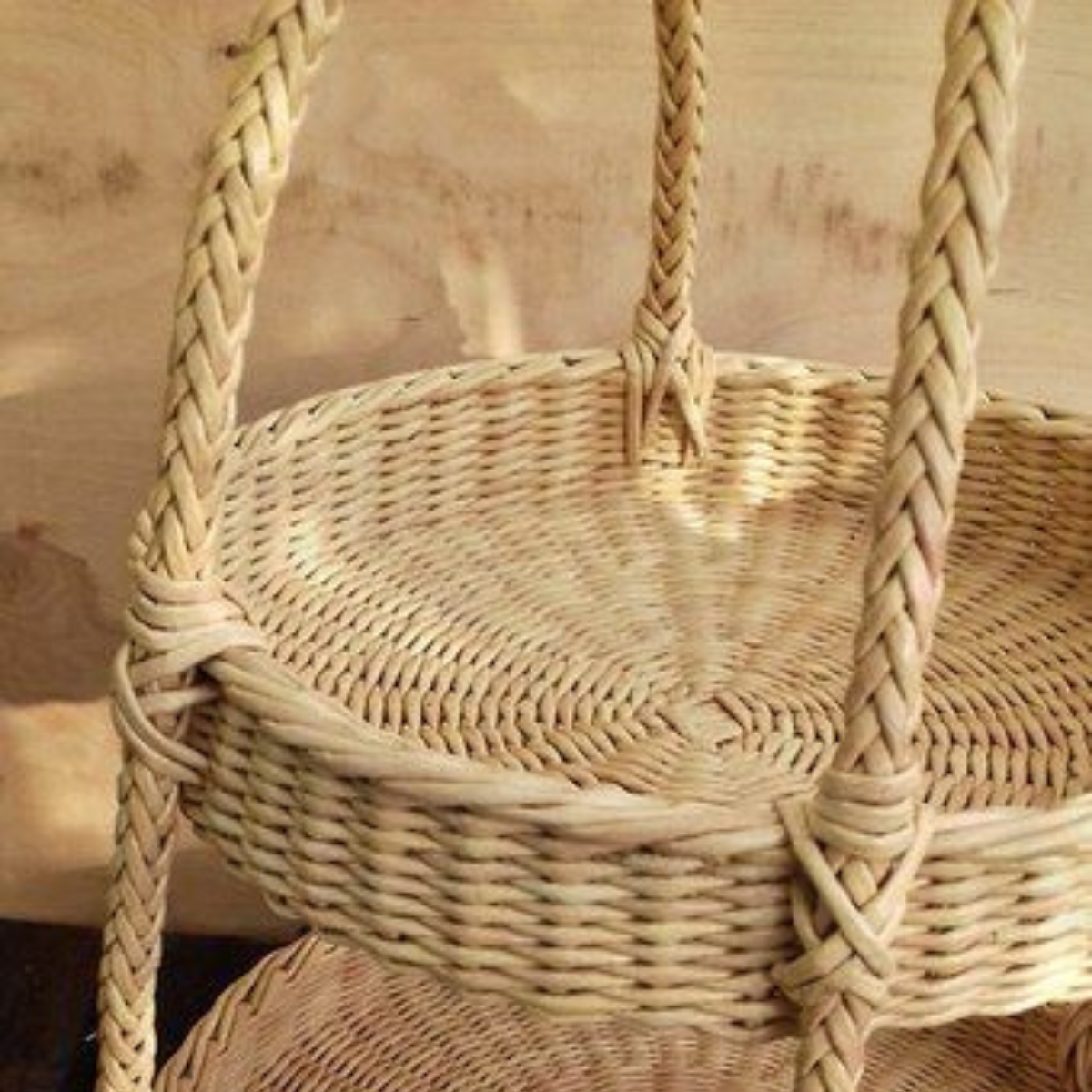 Handwoven Natural Rattan 2 Tiers Tray Storage Tower – M0849
