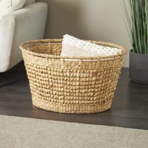 This water hyacinth basket features a clean oval silhouette with softly rounded edges, creating a balanced and calming visual presence in any interior space. The natural beige tone enhances the organic texture of the woven fibers, while the open weave structure adds lightness instead of visual heaviness.