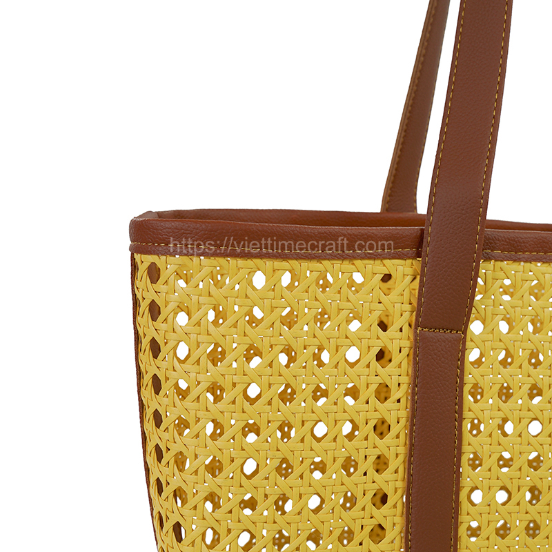 Rattan Bag Mix with Leather Handle