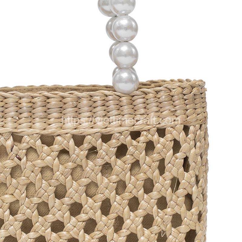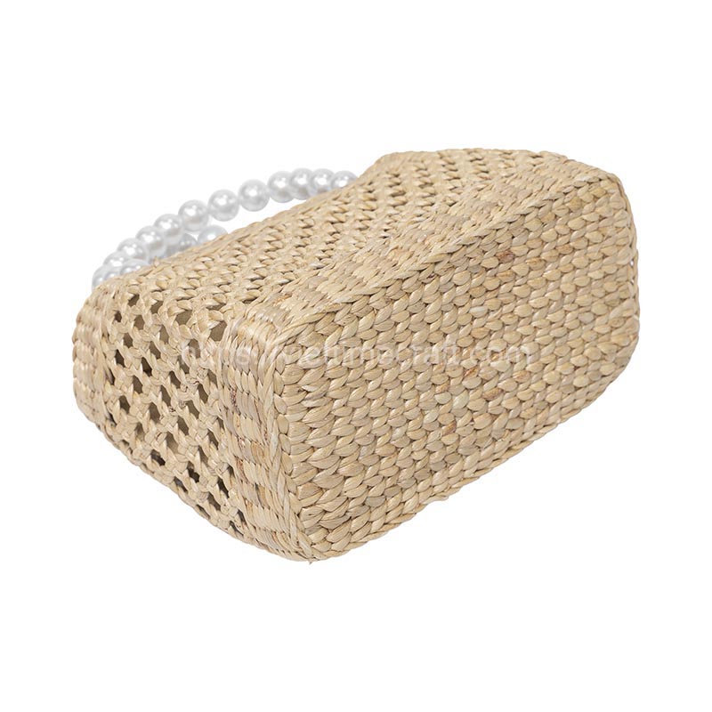 The handwoven water hyacinth handbag with a pearl string handle is a natural beauty and refined craftsmanship. Each strand of water hyacinth has been meticulously woven together, creating a stunning texture that showcases the skill and artistry of the artisans. Whether for a leisurely stroll or a special occasion, carrying this handcrafted bag is sure to attract attention and elevate any outfit with its unique blend of natural elements and refined aesthetics.