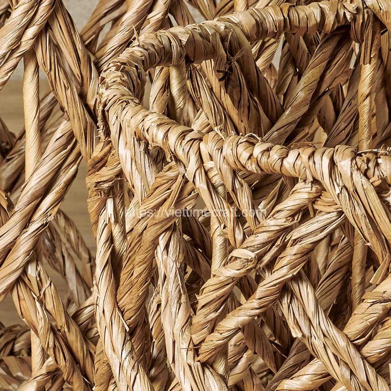 - From durable water hyacinth – known for its natural texture and strength. The thin weaving pattern adds an elegant touch to the baskets while maintaining their sturdiness.