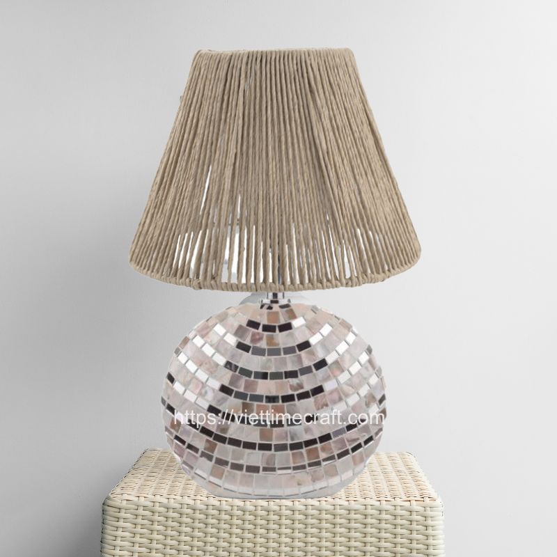 - Mother of Pearl Round base: serves as a beautiful foundation, enhancing the overall aesthetic appeal of the lamp. With its unique patterns and shimmering effect, the round base is sure to make a statement and elevate any space it illuminates.