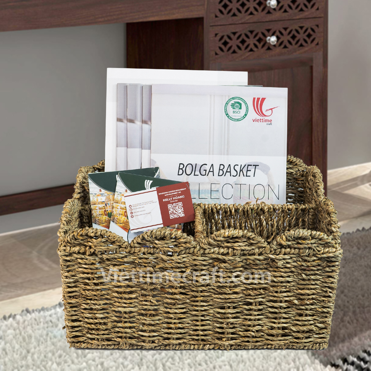 This natural seagrass storage basket/container wholesale (C00721) offers a multitude of functions, making it a versatile addition to any space. Its sturdy construction and ample storage capacity make it perfect for organizing books, magazines, or small utensils in the kitchen.