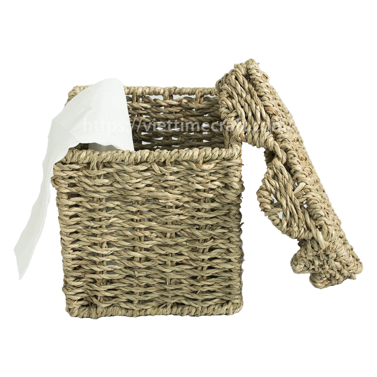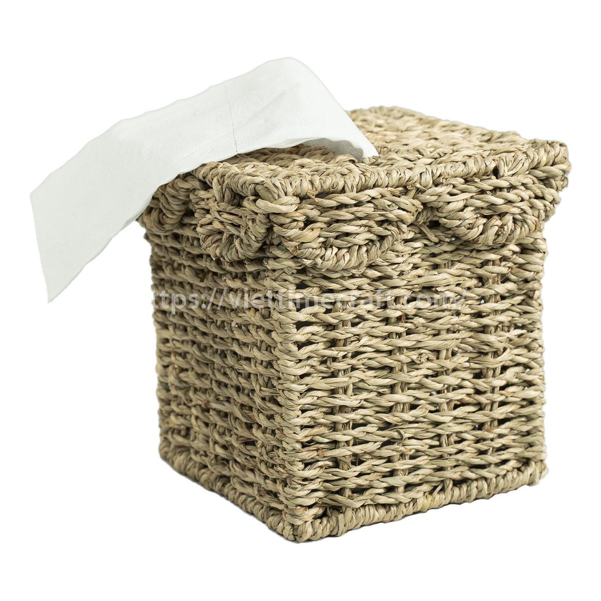 • Product Name: Seagrass Tissue Box with Daisy Flower Embroidered Pattern