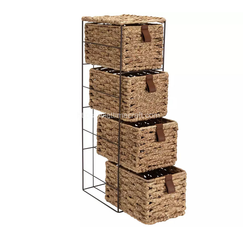 4-Drawer Storage Tower – Natural offers a practical and stylish storage solution for any room in your home. Its four spacious drawers and a natural finish make it a functional addition to your space. This rustic vertical standing basket storage tower combines the warmth and natural texture of wood with the organic appeal of water hyacinth baskets.