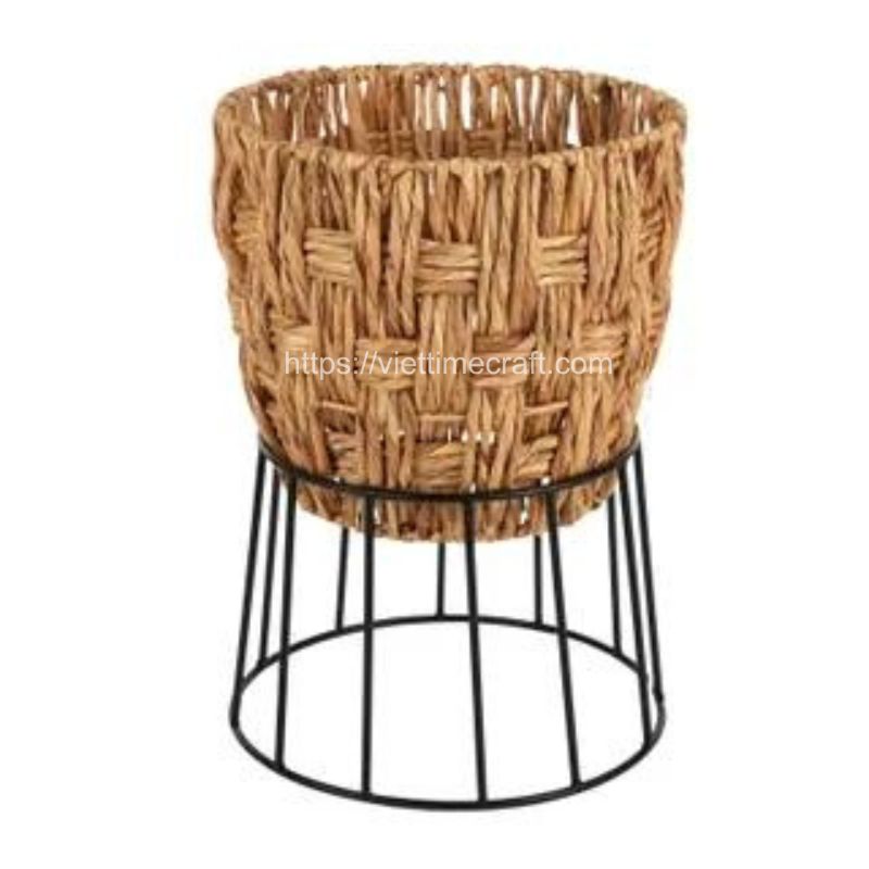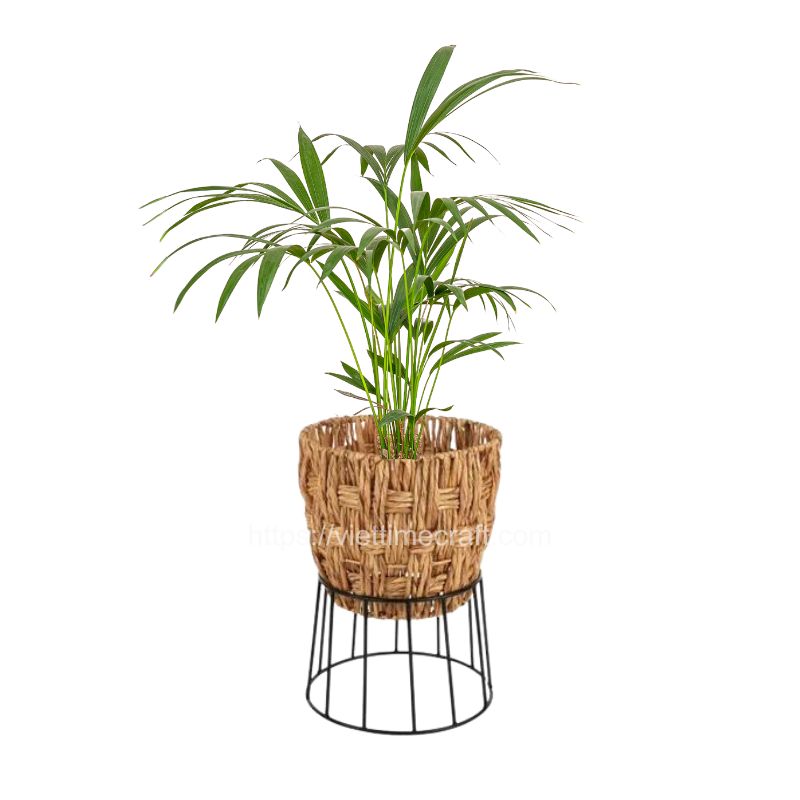 - The iron frame provides structural support and durability, ensuring that the planter maintains its shape and stability over time. The frame is designed to complement the woven texture of the water hyacinth, creating a harmonious and visually appealing combination. Additionally, the iron frame adds a touch of industrial chic to the planter, making it a versatile choice for both indoor and outdoor use.