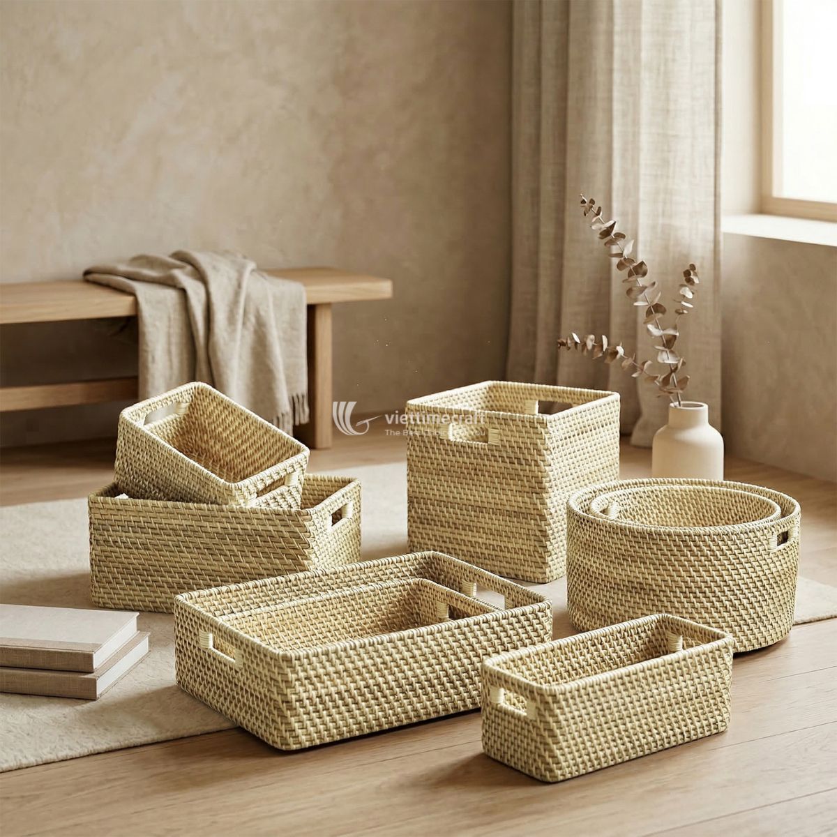 If you are looking for storage that doesn’t look like it came off a plastic assembly line, our diagonal weave rattan basket collection is exactly what your customers need. At Viettimecraft, we don’t just “make” baskets; we weave them one by one, using natural rattan that feels as good as it looks.
