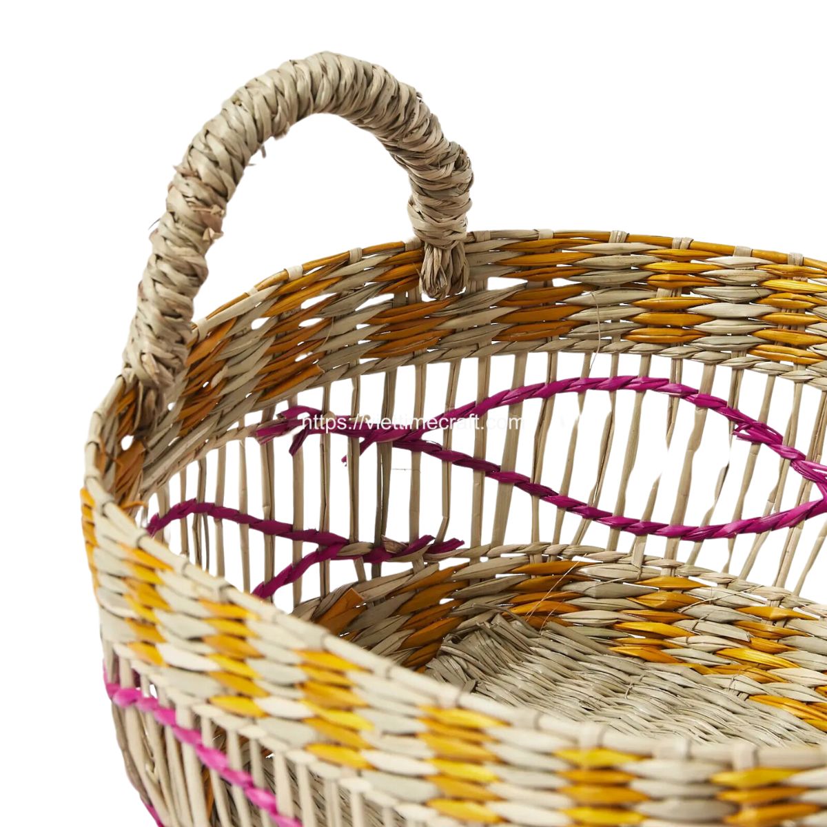 Imagining a woven bread basket that marries the earthy tones of seagrass with vibrant shades of deep pink and mustard yellow, your description conjures a vision of both style and functionality. This engaging interplay of colors and textures enhances the aesthetic appeal of our set seagrass basket and promises a delightful dining experience.