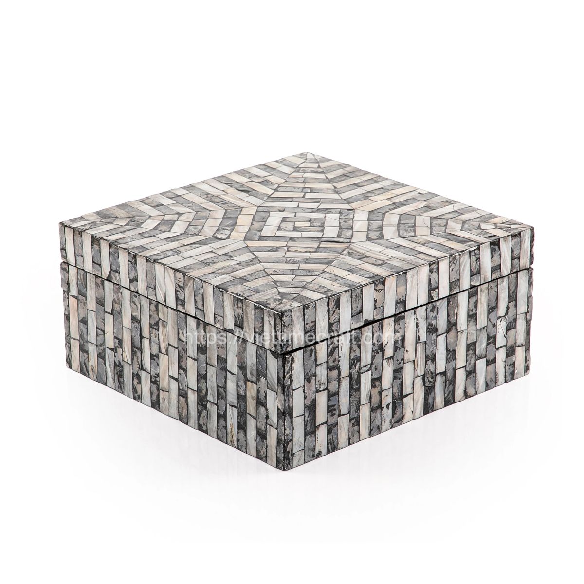 Crafted from density board and natural shells, this box features a stunning design on the front and a beautiful natural finish on the back. The hand-applied mother of pearl is carefully placed over the wooden box.
