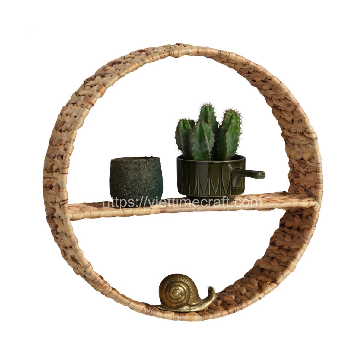 - Our wall-mounted shelves are crafted from water hyacinth. So, using water hyacinth in the decor piece adds an eco-friendly and sustainable touch to your space.