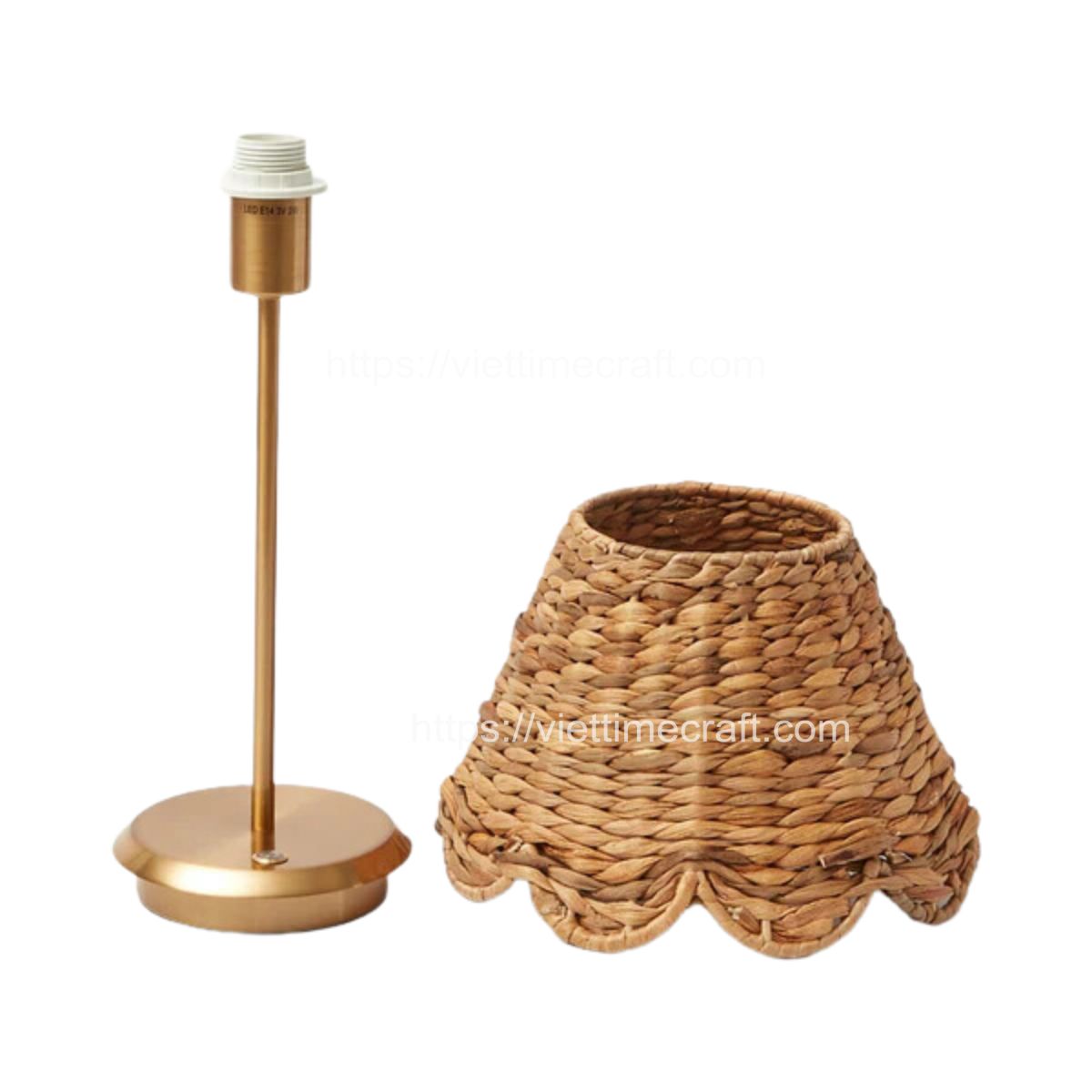 - The water hyacinth table lamp is a meticulously crafted lighting fixture that combines the beauty of natural materials with a touch of modern design mixing color white and natural. A sturdy iron frame supports the water hyacinth shade, ensuring stability and durability.