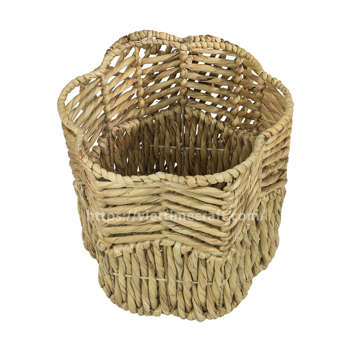 - Designed with both function and beauty in mind, this scalloped wicker basket set offers a wide range of practical applications in modern homes, retail spaces, and hospitality environments. Its neutral tone, natural texture, and lightweight build make it a stylish yet beneficial storage solution.