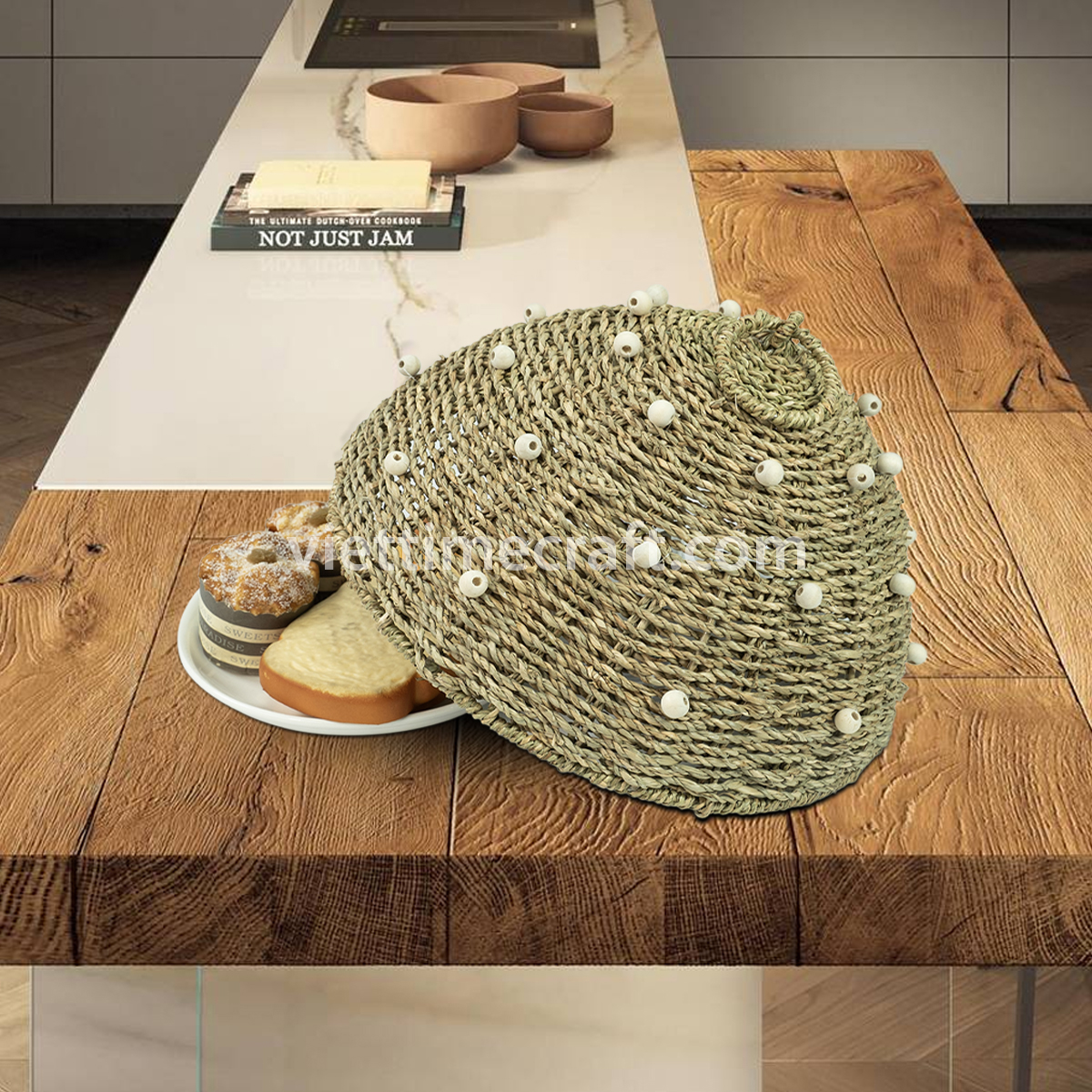 - Design: Dome-shaped food cover with hand-attached wooden beads.