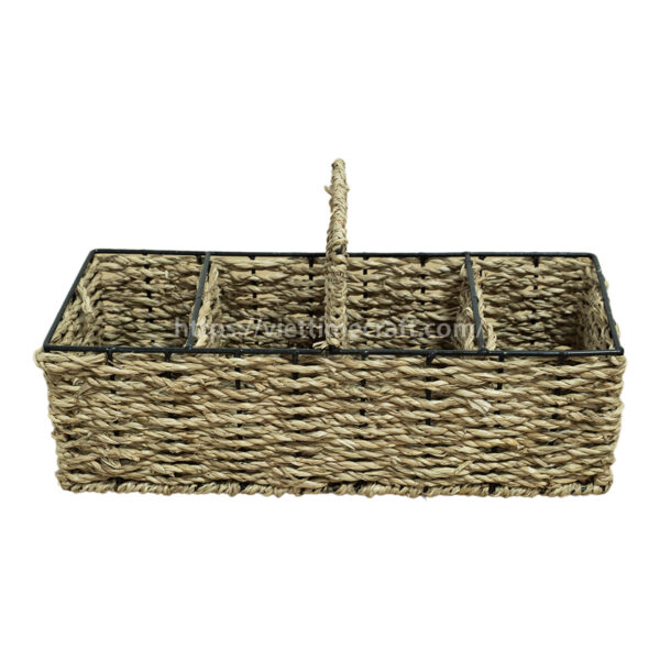 Elevate your dining or picnic setup with this Handwoven Seagrass Utensil Caddy, crafted with care by skilled artisans in Vietnam. Featuring four spacious compartments and a central handle for easy carrying, this caddy is perfect for organizing spoons, forks, knives, or napkins.