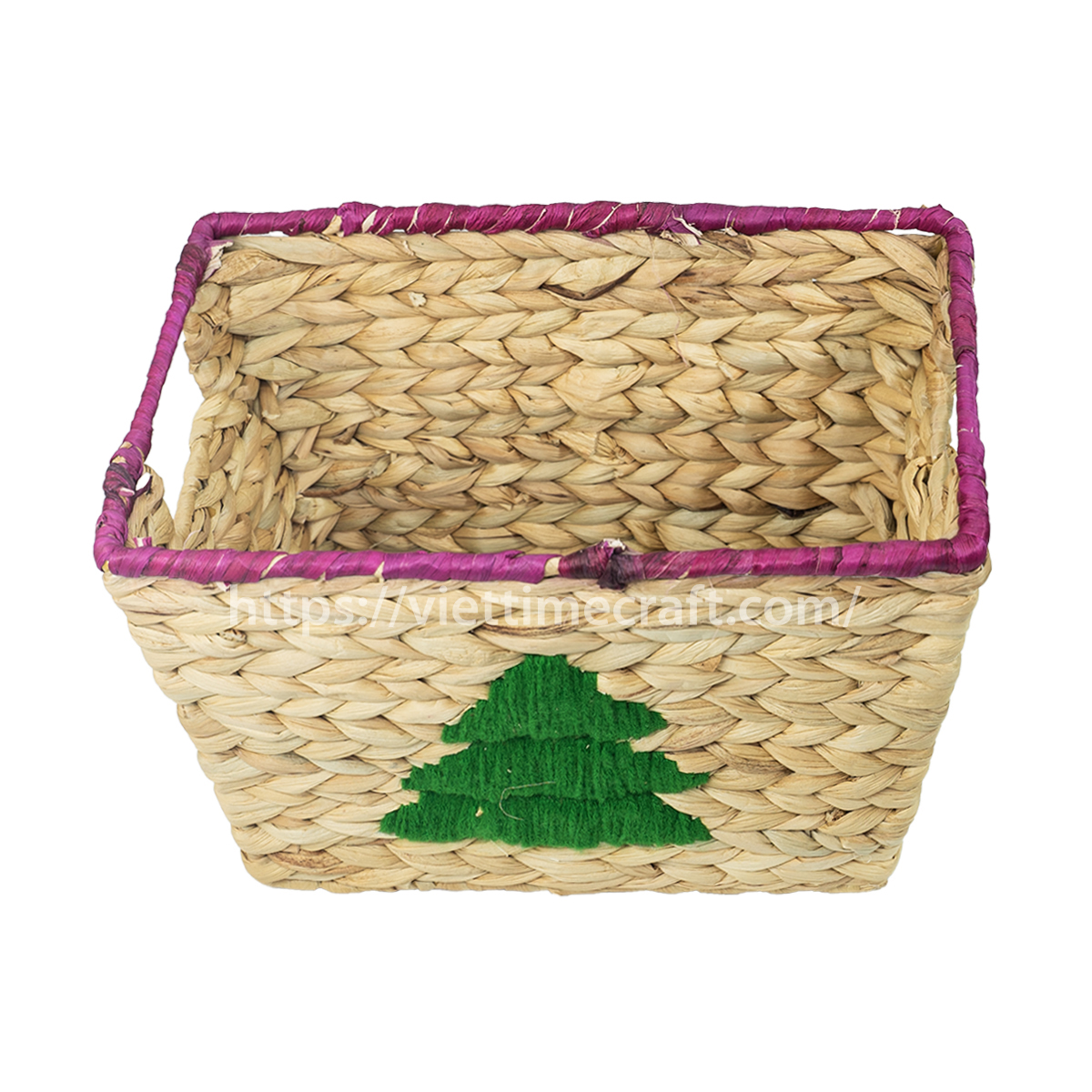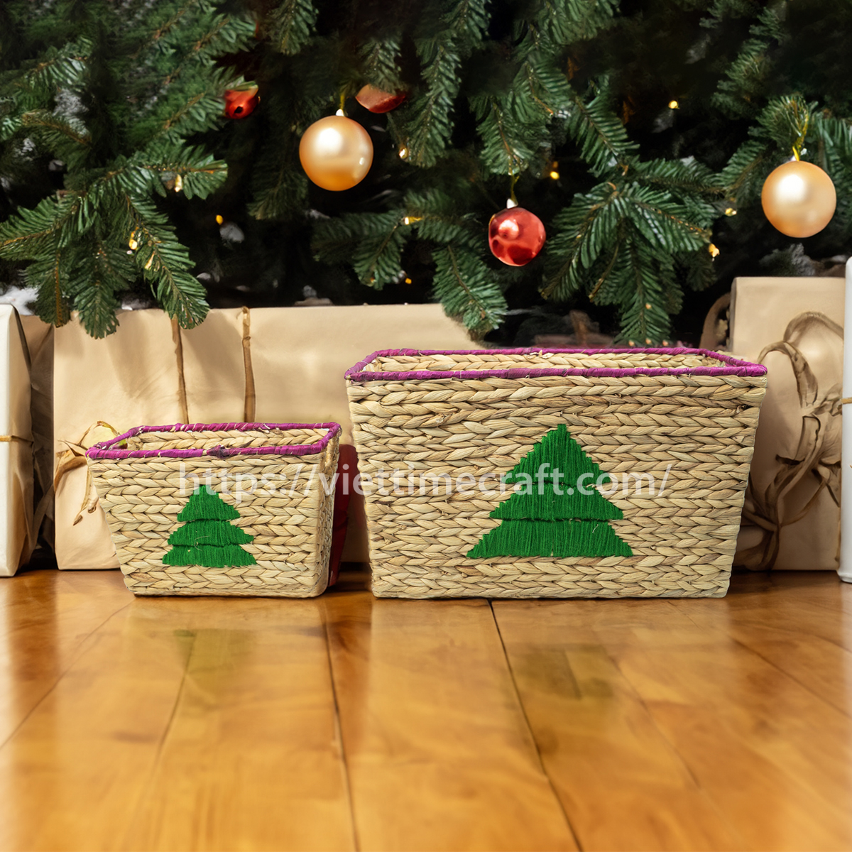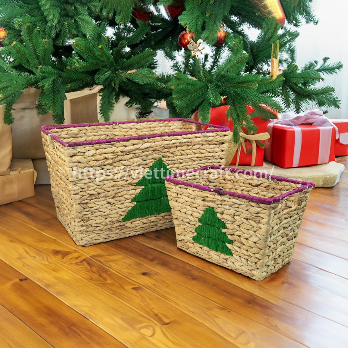 • Product Name: Set Of 2 Water Hyacinth Basket with Christmas Tree Embroidery