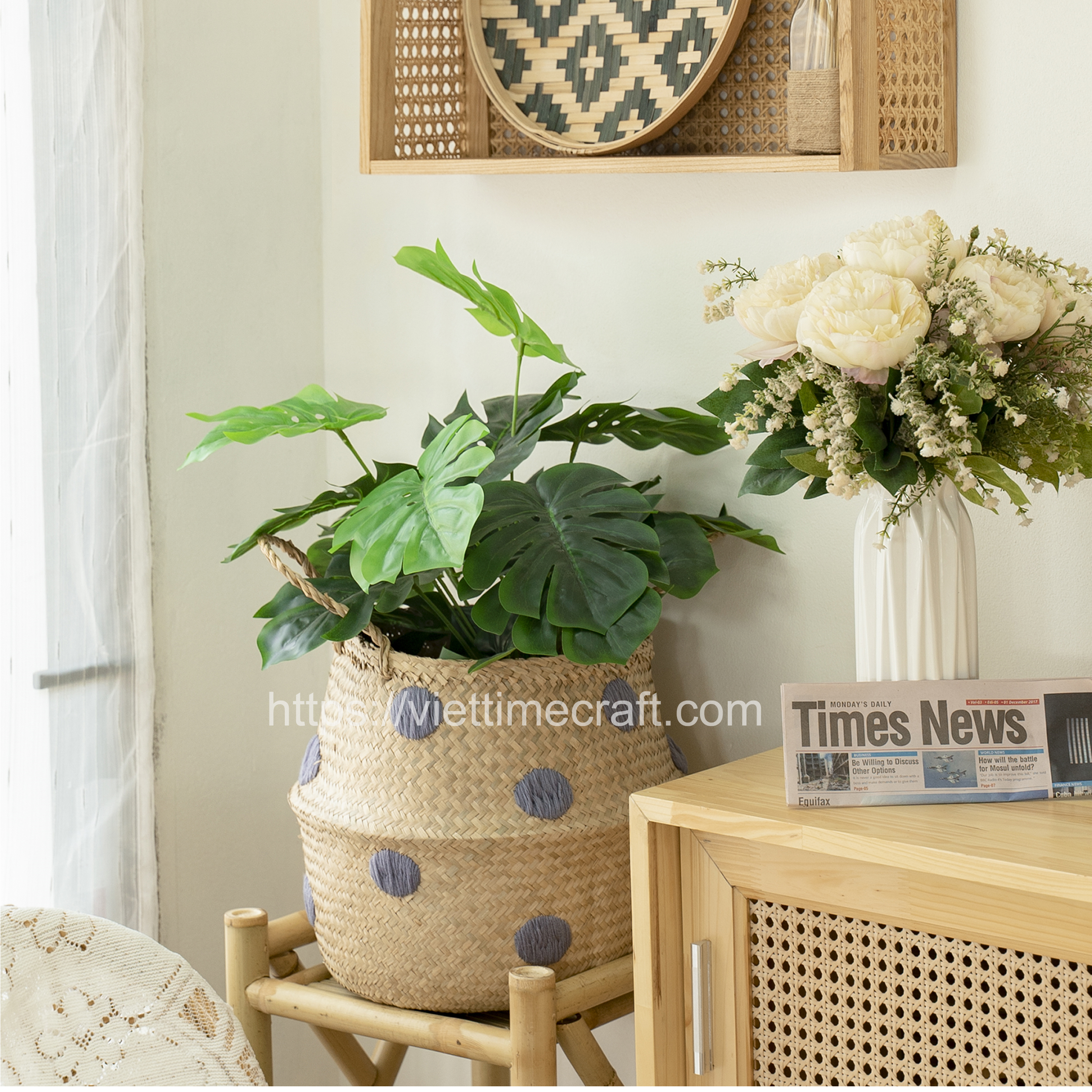Seagrass Belly Basket Wholesale sku C00582 with star pattern is useful, being made of natural materials and collapsible. It is undoubtedly a must-have item if you are seeking an eco-friendly and space-saving storage tool.