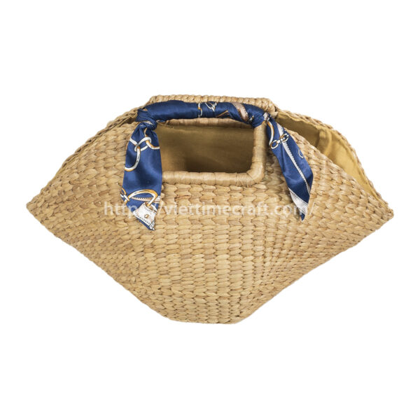 Crafted with care and artistry, our water hyacinth bag brings a touch of rustic elegance to any summer outfit. Handwoven from 100% natural water hyacinth fibers, this tote showcases the craftsmanship of skilled Vietnamese artisans. Its lightweight yet durable structure ensures comfort and reliability, while the charming scarf-tied handles add personality and elegance.