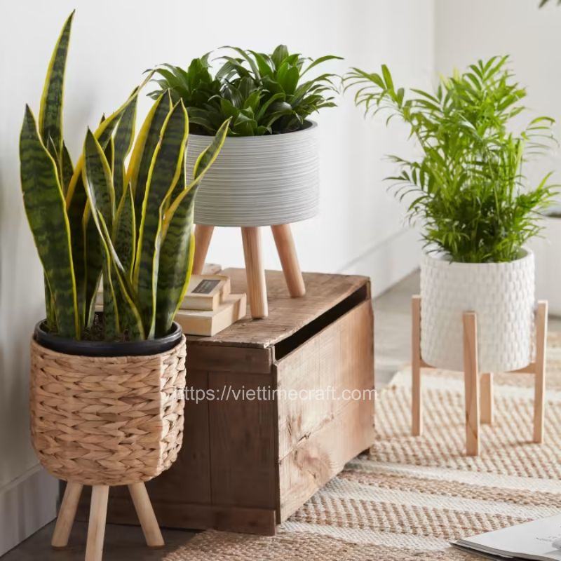 - The planter sits on a natural wooden support, creating a simple yet elegant addition that is guaranteed to bring a stylish and natural element to your surroundings.