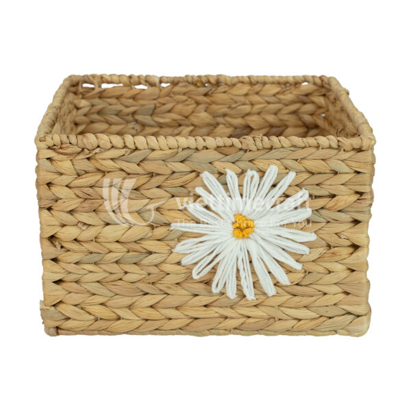 Bring warmth and elegance to your space with our water hyacinth woven basket set, paired with a matching tissue box cover, both beautifully embroidered with white daisy flowers. This unique handmade set combines rustic charm with subtle floral detailing, making it the perfect accent for your home, spa, hotel, or gift shop.