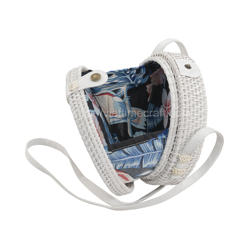 - Lining: The bag is equipped with a liner, which serves multiple purposes. The liner helps to keep the contents of the bag secure and prevents small items from slipping through the gaps. It also adds a layer of protection to the bag, ensuring that the rattan material is not damaged by the items placed inside. Additionally, the liner can provide a contrasting or coordinating color to the white rattan, adding visual interest to the bag.