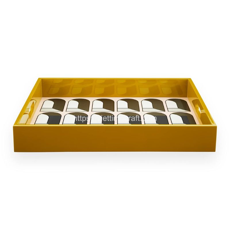 - Moreover, this lacquer serving tray can be used as a functional organizer. So it keeps everyday items neatly arranged and easily accessible, while simultaneously adding a touch of elegance to your space.
