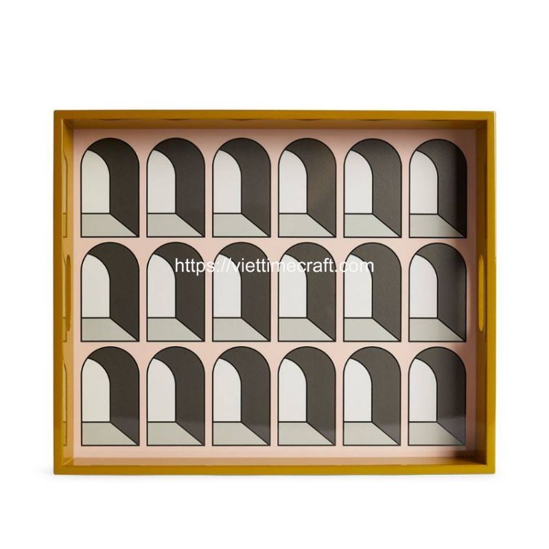 This lacquer tray is a beautiful decoration with a creative pattern. It is made from MDF materials and has a shiny lacquer coating that adds a luxurious touch to its look. The tray with different colors to suit your style or match your home decor.