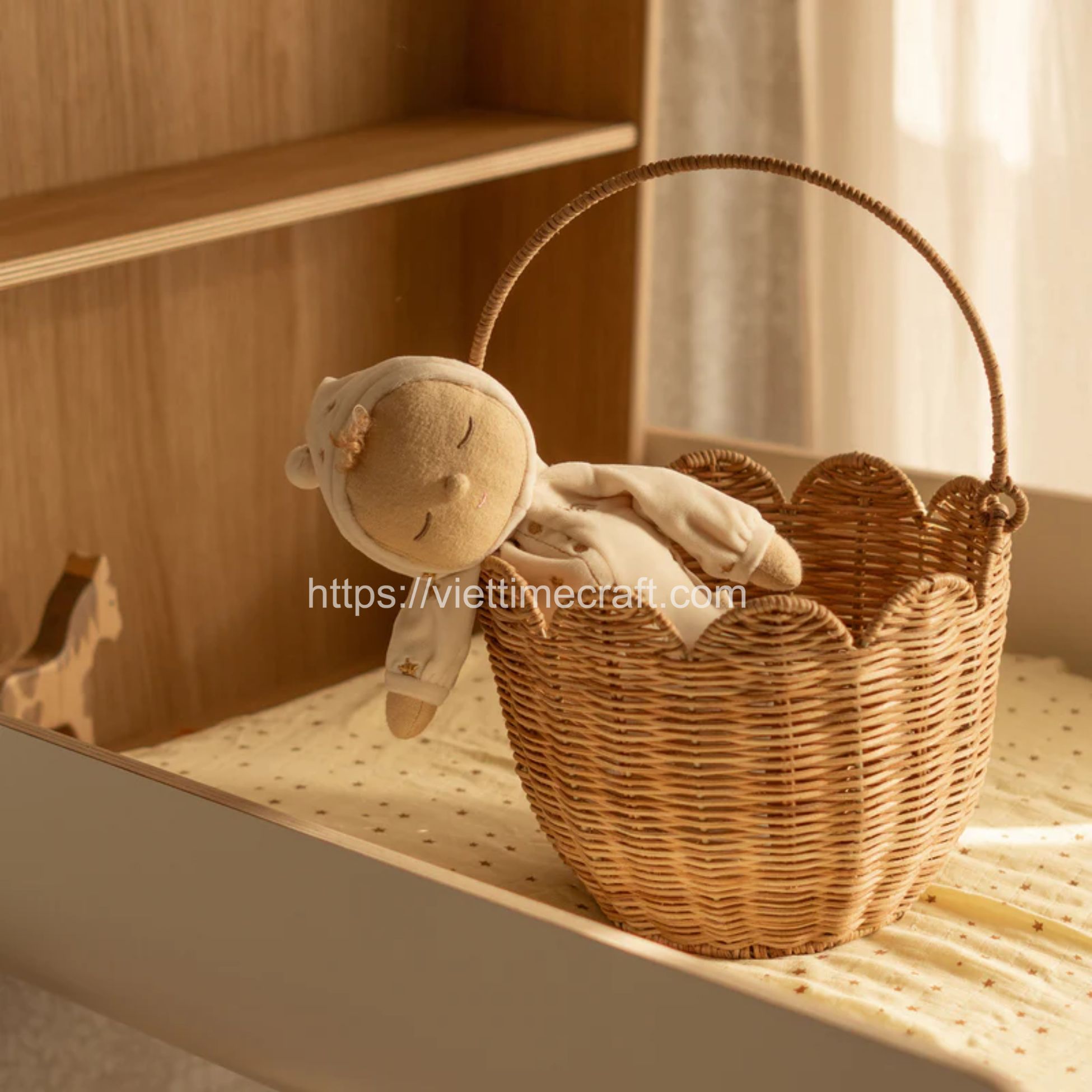 Enliven your nursery, play area, or market mornings with everlasting flowers using our Rattan Tulip Carry Basket! Designed for easy transportation both inside and outside the home, this beautifully woven basket features a charming scalloped edge and a convenient carry handle.