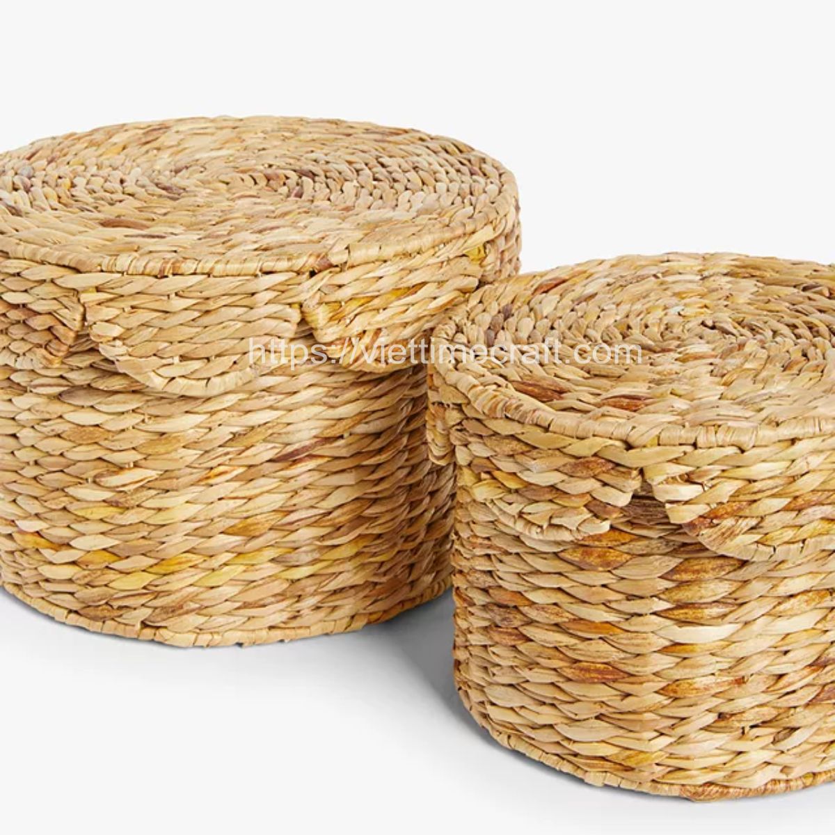Our round water hyacinth storage basket is the elegance of a stunning set of handcrafted baskets, each adorned with a charming capped edge. These baskets are meticulously created by skilled artisans, who pour their craftsmanship and attention to detail into every piece. The capped edges add a touch of sophistication and refinement to the design, elevating the overall aesthetic appeal.