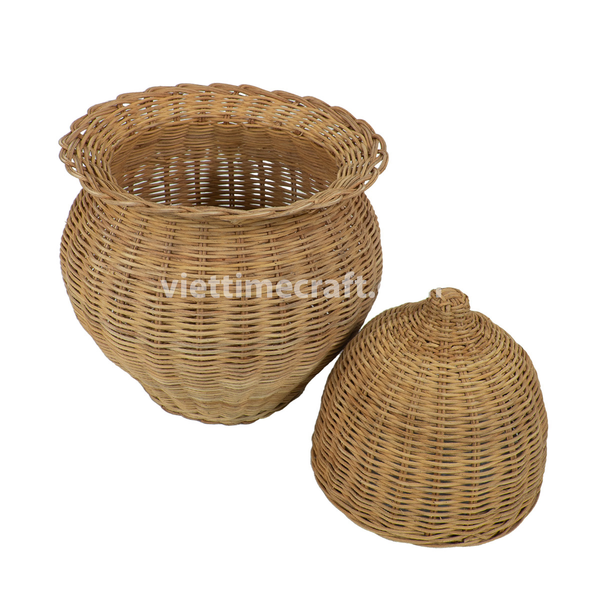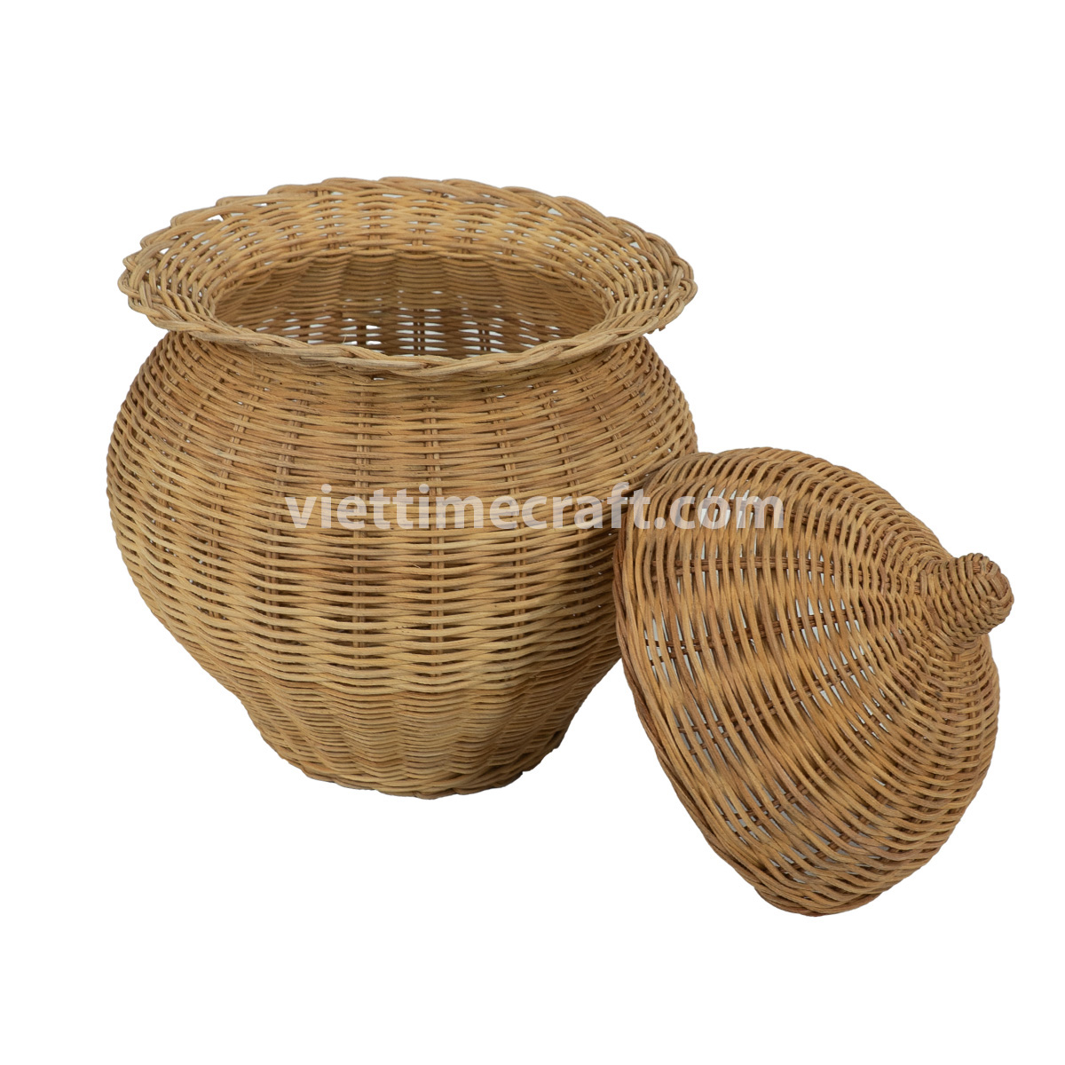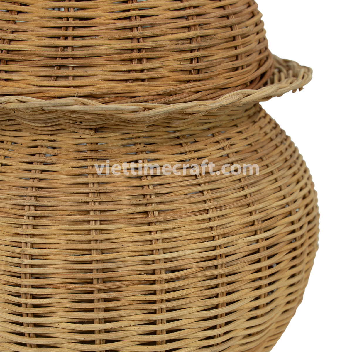 Each jar is handwoven from premium natural rattan, carefully selected for strength, flexibility, and a smooth finish. Skilled artisans in Vietnam create each piece using time-honored weaving techniques, ensuring high-quality craftsmanship and a unique design for every jar.