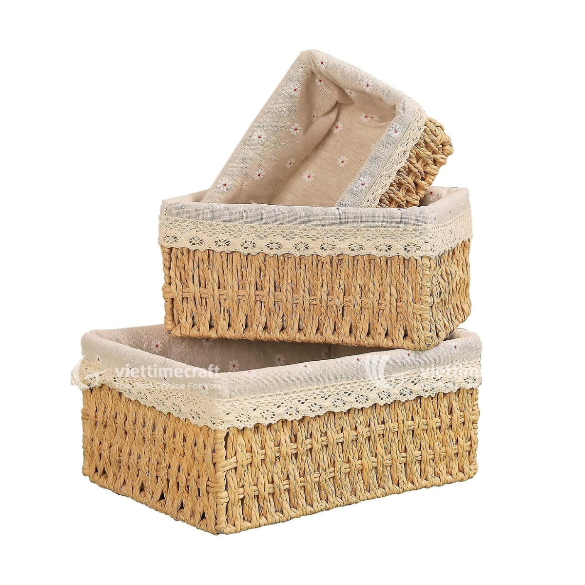 The Woven basket Wicker Straw Rope Basket offers a practical and natural storage solution for any space. Crafted from sturdy straw materials, this rectangular basket combines functionality with a rustic charm.